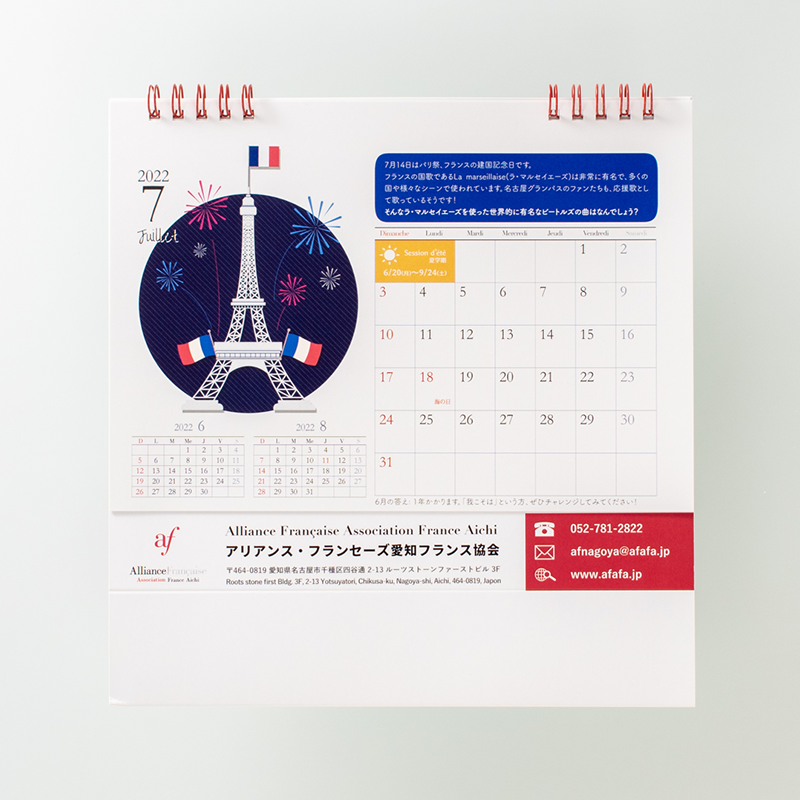 「アリアンス・フランセーズ愛知フランス協会 様」製作のオリジナルカレンダー