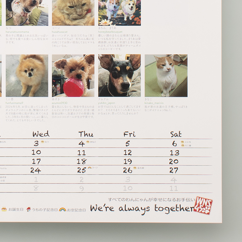 いつも支援いただいているフォロワーさまへの感謝を込めて、フォロワーさまの愛犬・愛猫を掲載した1年間使えるグッズ(=カレンダー)を作りたいと思いました。