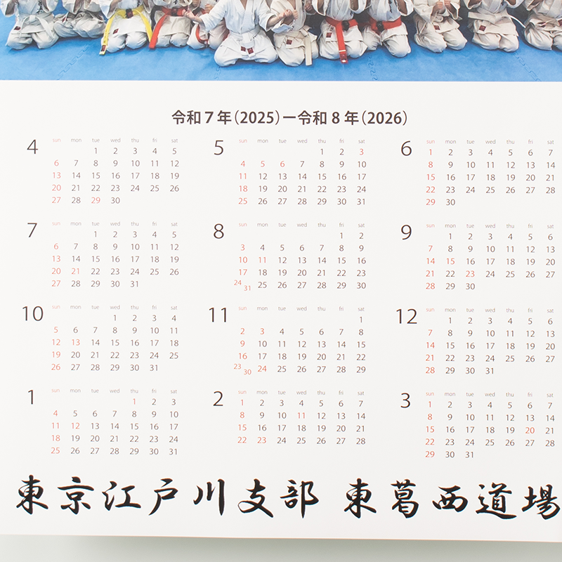 「新極真会東葛西道場 様」製作のオリジナルカレンダー