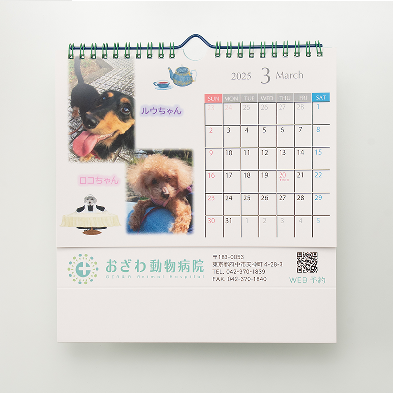 会社や事業、サービスを知ってもらうためにオリジナルカレンダーを作成しました。飼い犬や飼い猫を載せたいと思いカレンダーにしました。営業へ行くときにもっていっています。