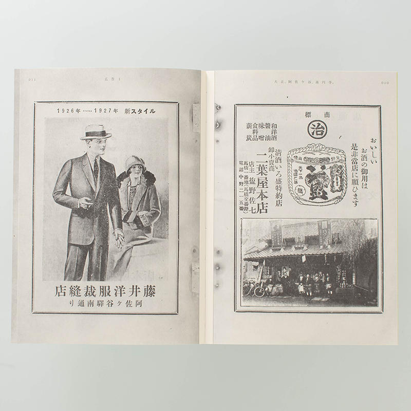 この夏当館(私設図書館)が収蔵した、大正末期東京・高円寺阿佐ヶ谷地域のタウンガイド本を解体修理した際にその全ページをスキャニングしましたが、中身を読んでみると非常に面白い内容で、また当時の商店建築写真などの図版も貴重な資料とおもわれるため、著作権保護も切れていることから影印版として復刊する企画が急遽立ち上がりました。